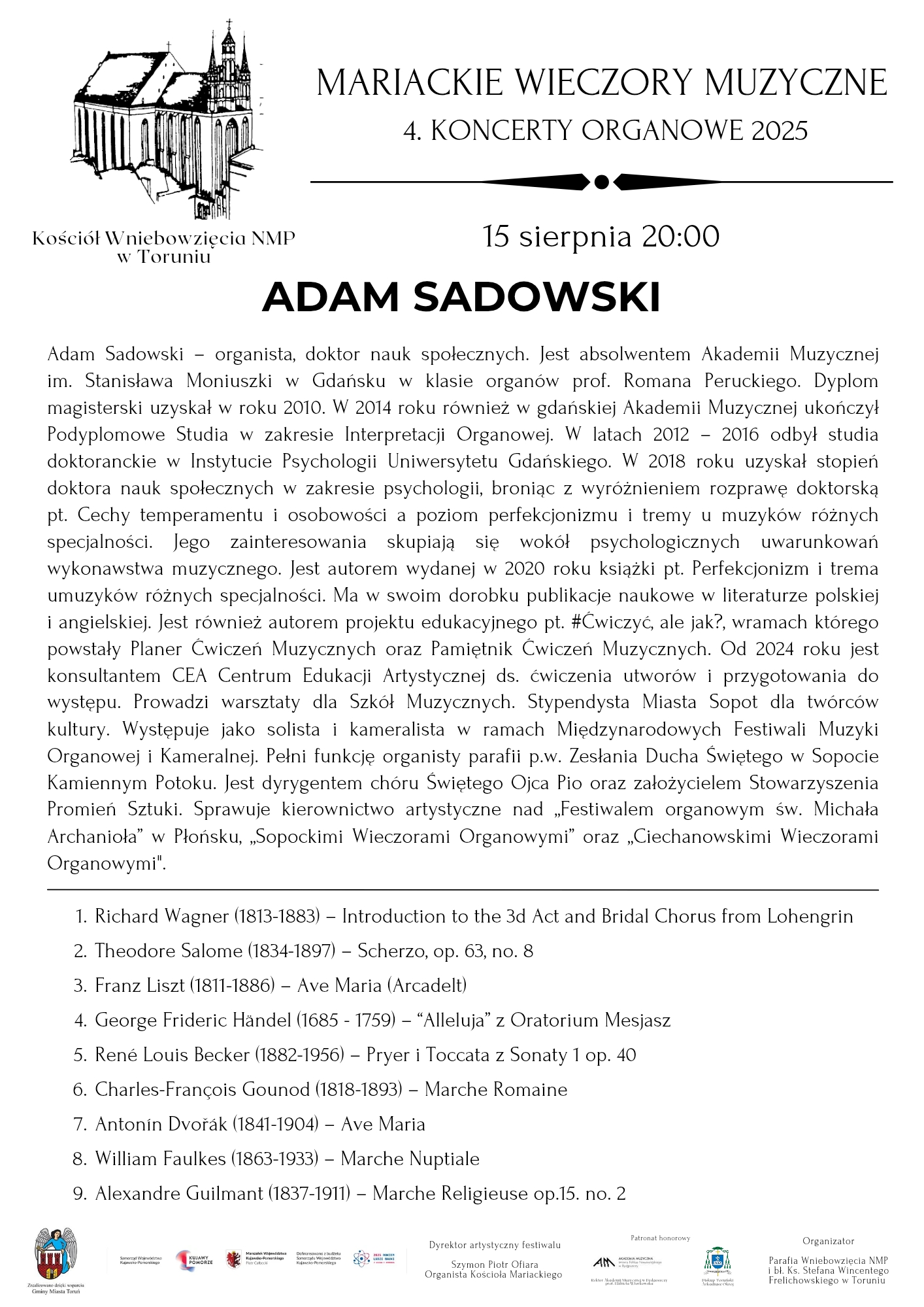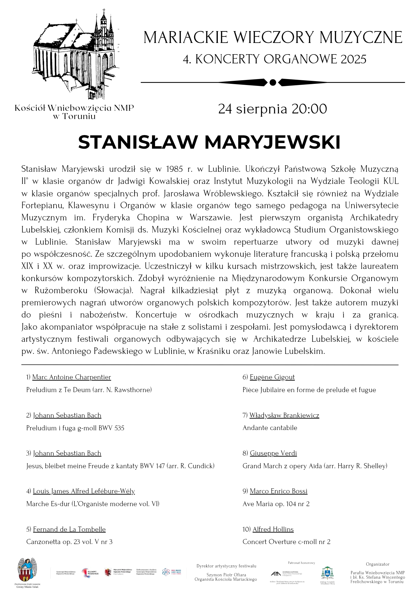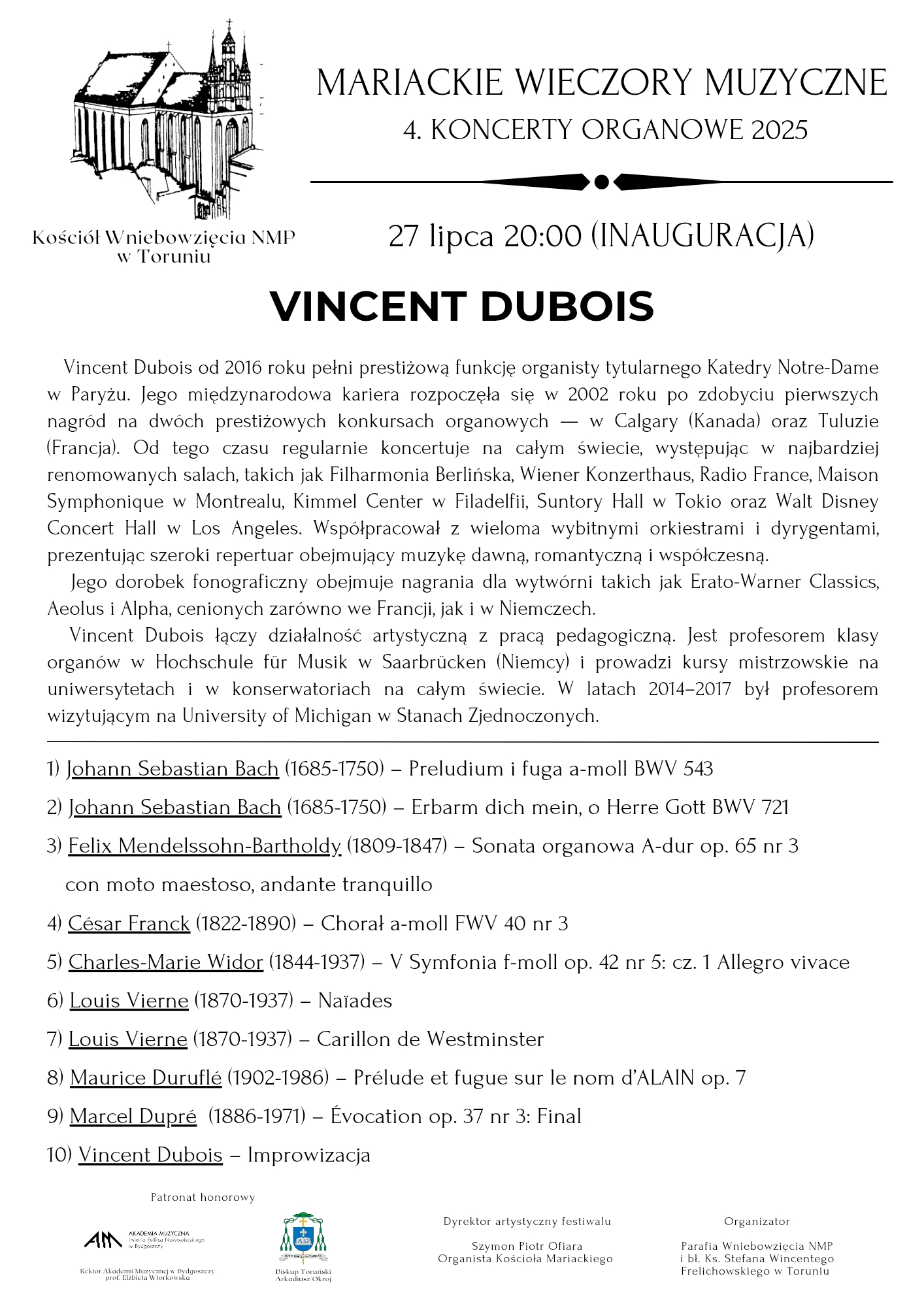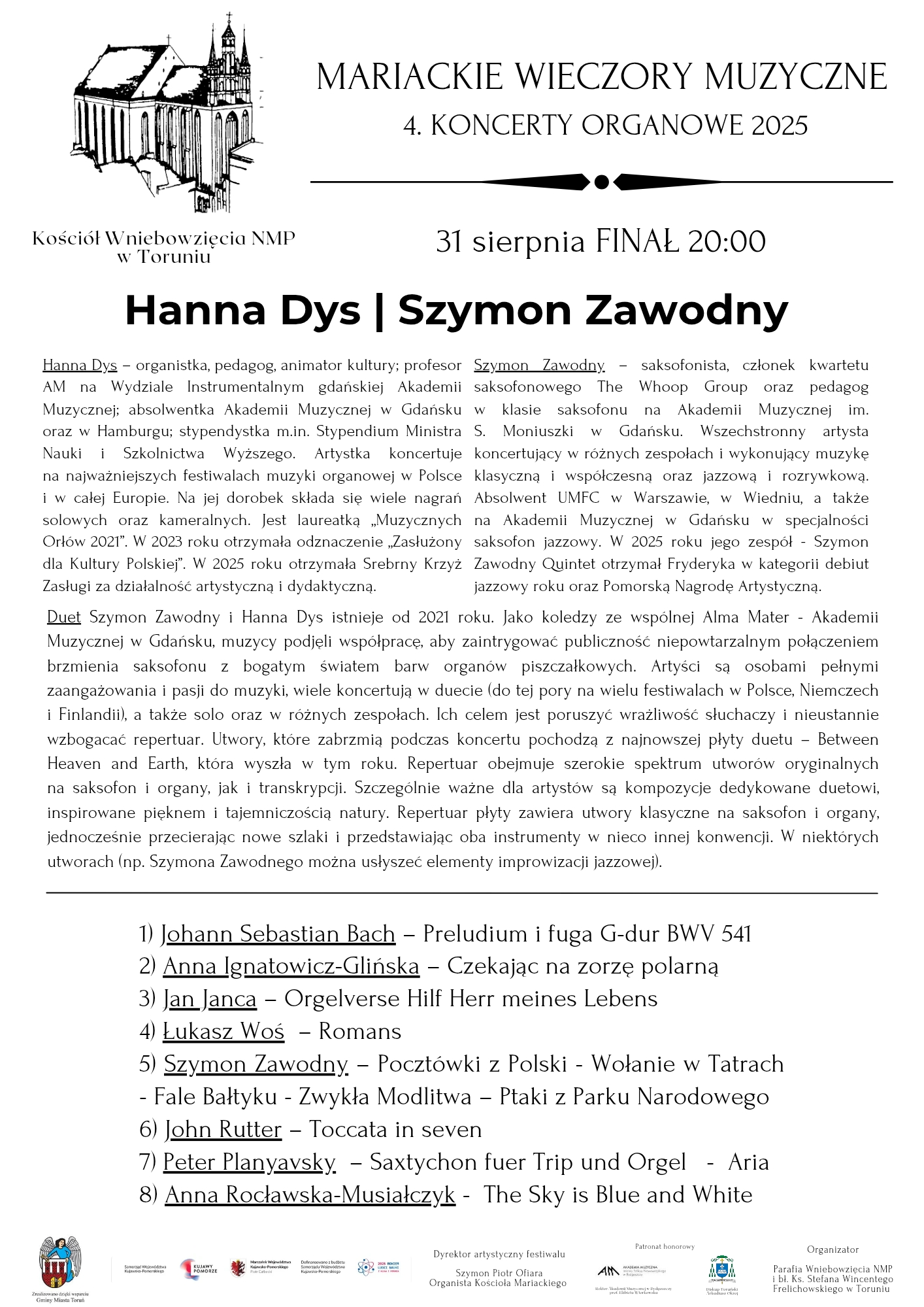 Vincent Dubois - organy 27 lipca 2025 PROGRAM Ewa Polska - organy 3 sierpnia 2025 PROGRAM Adam Sadowski - organy 15 sierpnia 2025 PROGRAM Stanisław Maryjewski - organy 24 sierpnia 2025 PROGRAM Hanna Dys - organySzymon Zawodny - saksofon 31 sierpnia 2025 PROGRAM skontaktuj sięz nami Masz jakieś pytania? Napisz do nas. kontakt